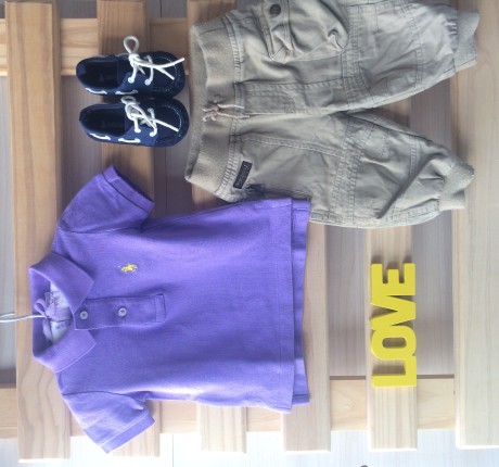 Camiseta polo manga curta. Tamanho: 9 meses